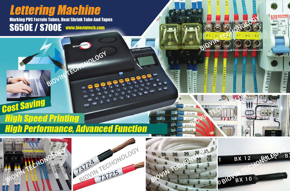 Biovin Technology emitted S650E and S700E high performance, advanced function electronic lettering machine for marking PVC ferrule Tube, tape and heat shrinkable tube. 300dpi resolution printing produces clear, sharp and durable lettering.
